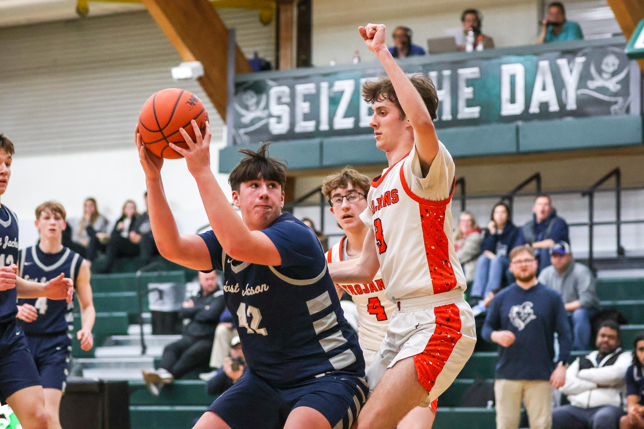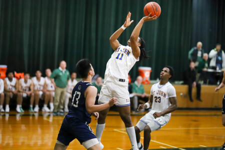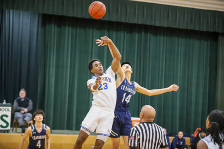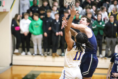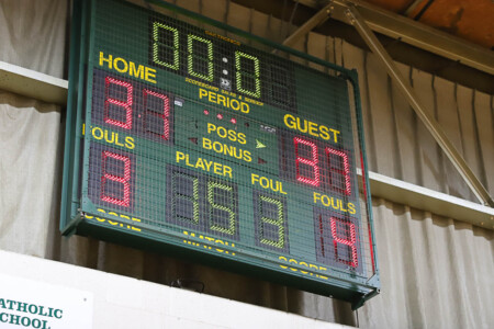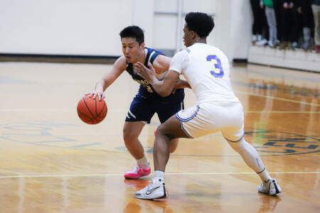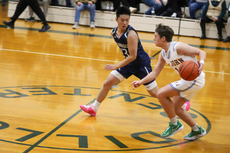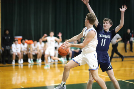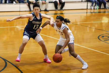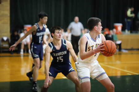 Basketball Boys Cranbrook vs Lumen Christi, 1-19-24. The Titans sported throwback St. John uniforms and the game was played at the Ken Dillon Center at St. John School. St. John School is celebrating 150 years with various activities throughout the year, including tonight’s game. Lumen Christi won in overtime, 63-50. Photos by Bart Hawley, JTV.