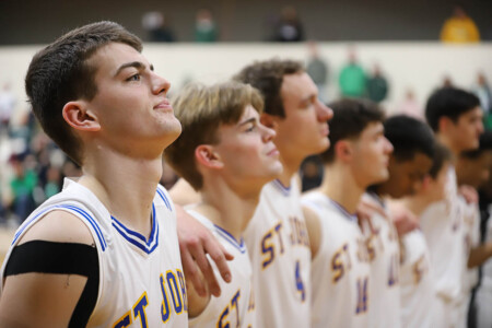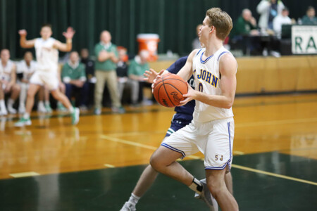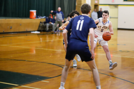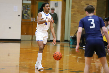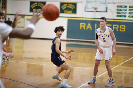 Basketball Boys Cranbrook vs Lumen Christi, 1-19-24. The Titans sported throwback St. John uniforms and the game was played at the Ken Dillon Center at St. John School. St. John School is celebrating 150 years with various activities throughout the year, including tonight’s game. Photos by Bart Hawley, JTV.