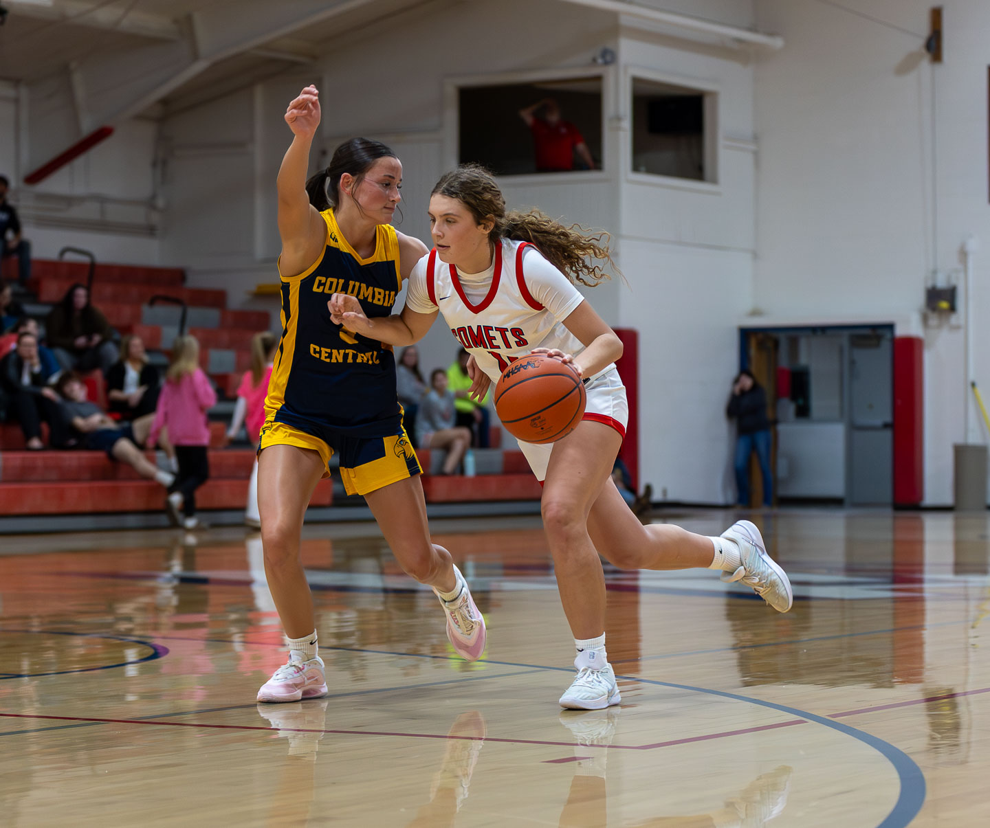 Molly Soper (11) led the HH Comets with 16 points. Columbia Central defeated HH 65-41 to clinch the Cascades-West division. Photo by Kelly Evans, JTV Sports