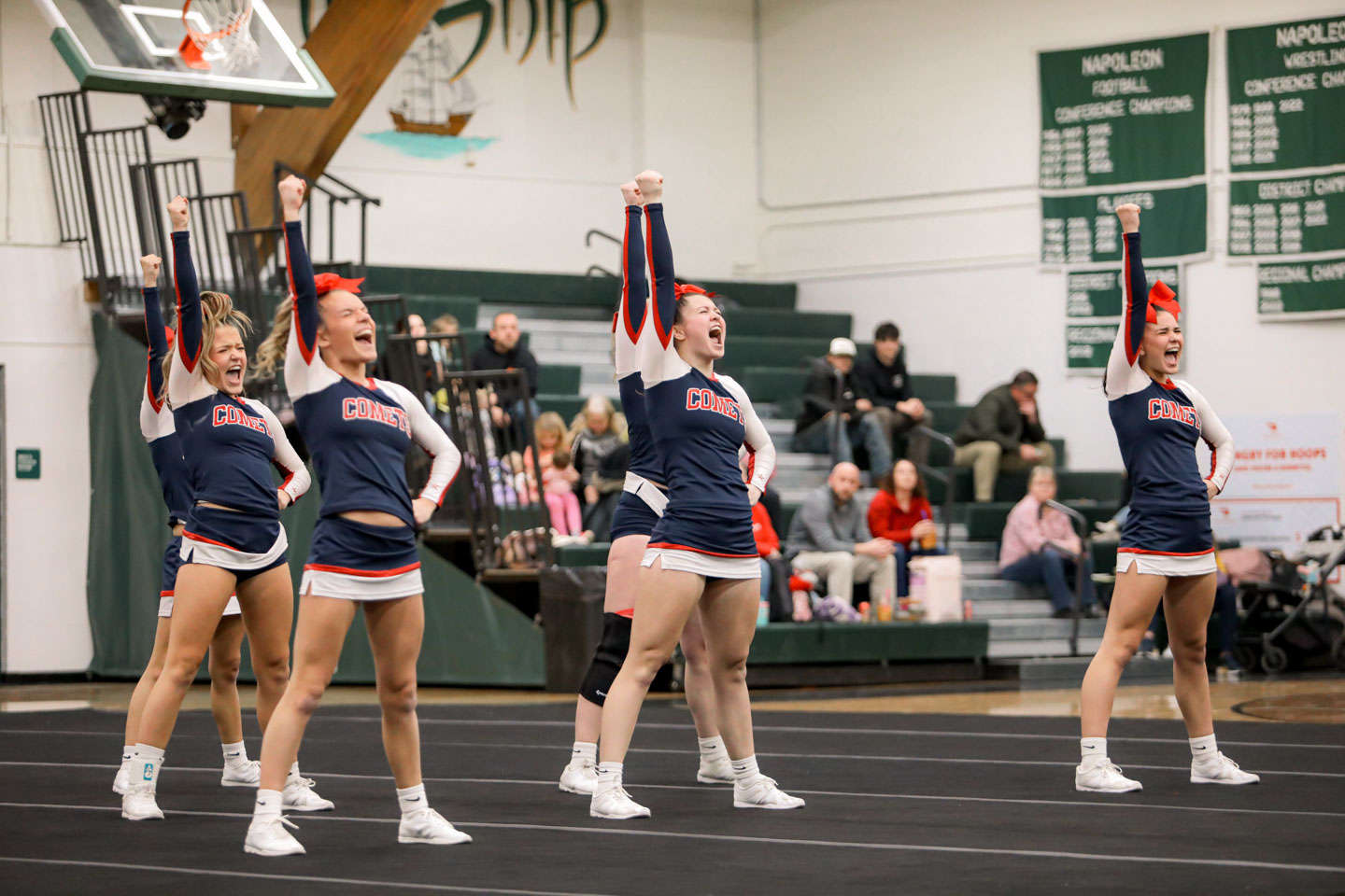 Hanover Horton won its second straight Cascades Conference cheer championship on Tuesday night, in their quest to reach to the state finals again in 2026. Photo by Maddie Vieau, JTV Sports