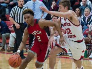 Michigan Center and Hanover Horton Boy high school basketball playing cardinals comets