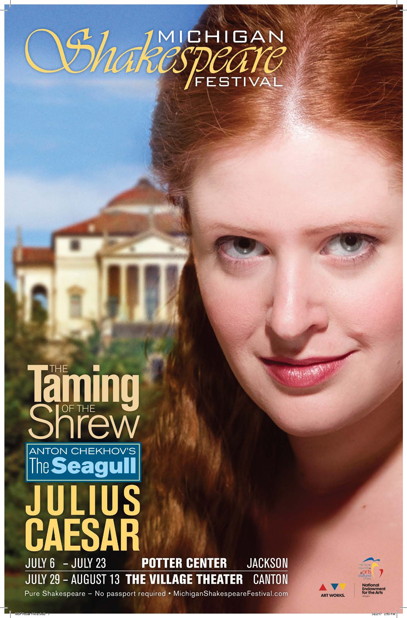 Tickets for THE TAMING OF THE SHREW, JULIUS CAESAR, and THE SEAGULL are now available: Online at www.MichiganShakespeareFestival.com, by phone in Jackson at 517-796-8600 or by phone in Canton at 734-394-5300.