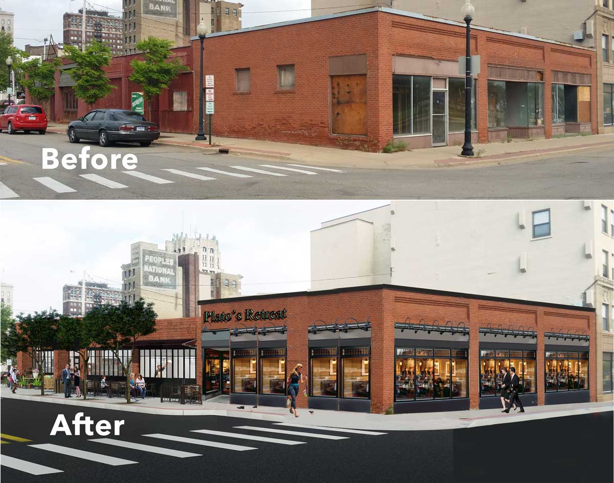 Plato’s Retreat will will serve as the dining area for those who get food from the food court, plus be its own stand alone pub and coffee house for patrons drinking anything from coffee to martinis all times of the day and night.
