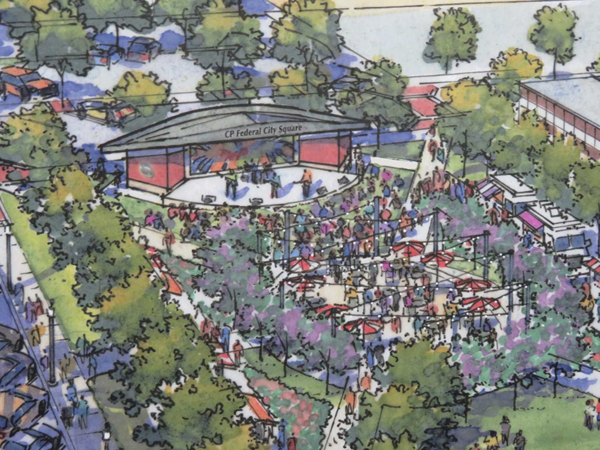 The Glidden Parker Mural will be installed in Horace Blackman Park with the building of CP Federal City Square. O’Harrow Construction Co. will begin work this month on the structure, which will include a stage, housing for the lighted mural and a drop down movie screen. It was announced last week that funding for the project is nearly complete and the structure will be completed by November.