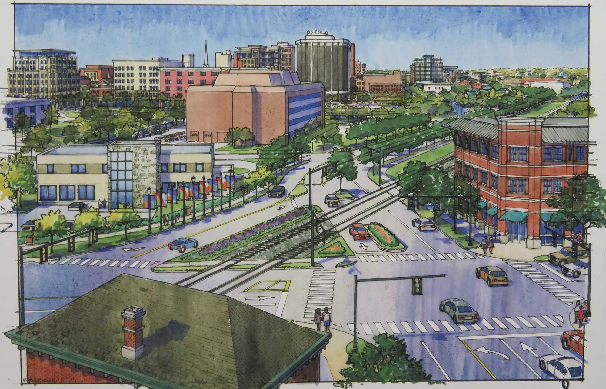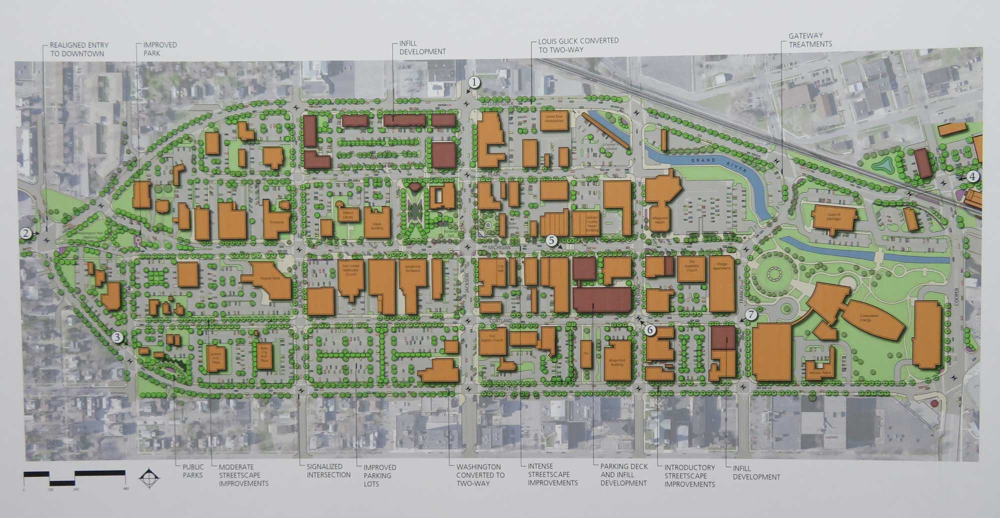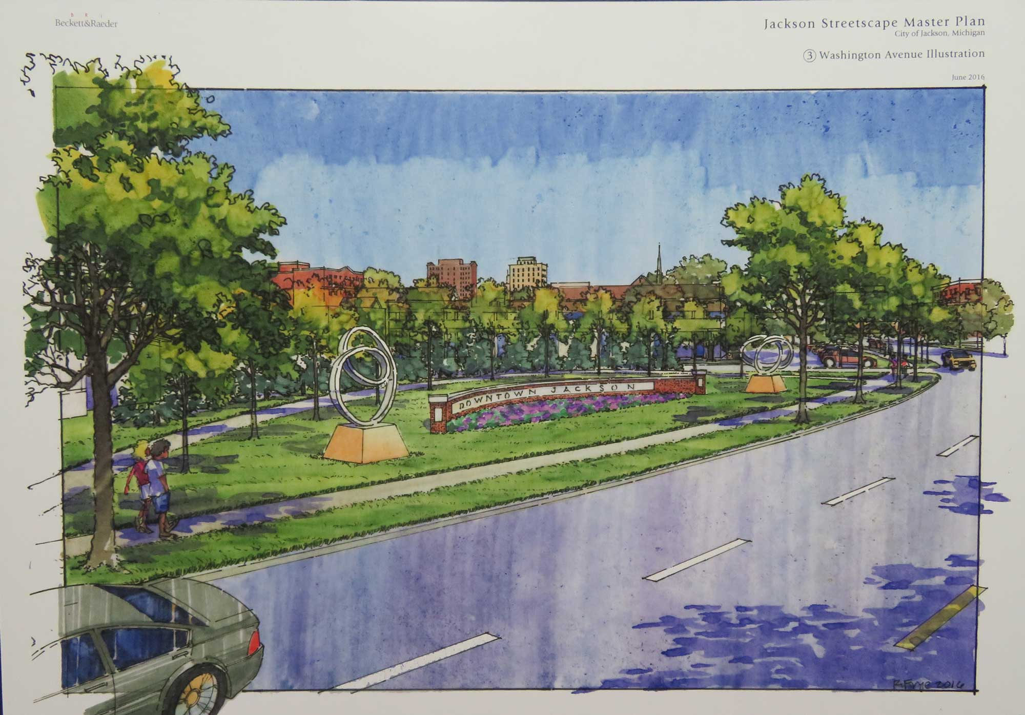 In preparing downtown for future development, the city engaged the firm of Beckett & Raeder to design various components, including the new Horace Blackman Park and various tracts of vacant downtown land. In drawings, the firm imagines what downtown could look like with developments on various sites including the former K&J Tire building, parking lots on Michigan Avenue and Mechanic street. The firm also offered designs for new entranceways to the downtown upon completion of the two way conversion of both Washington and Glick, scheduled for 2017.