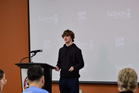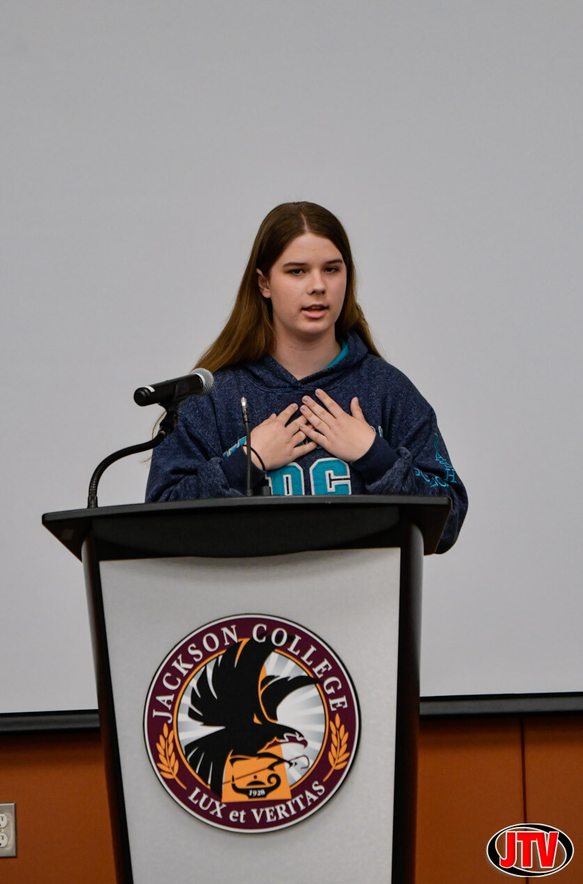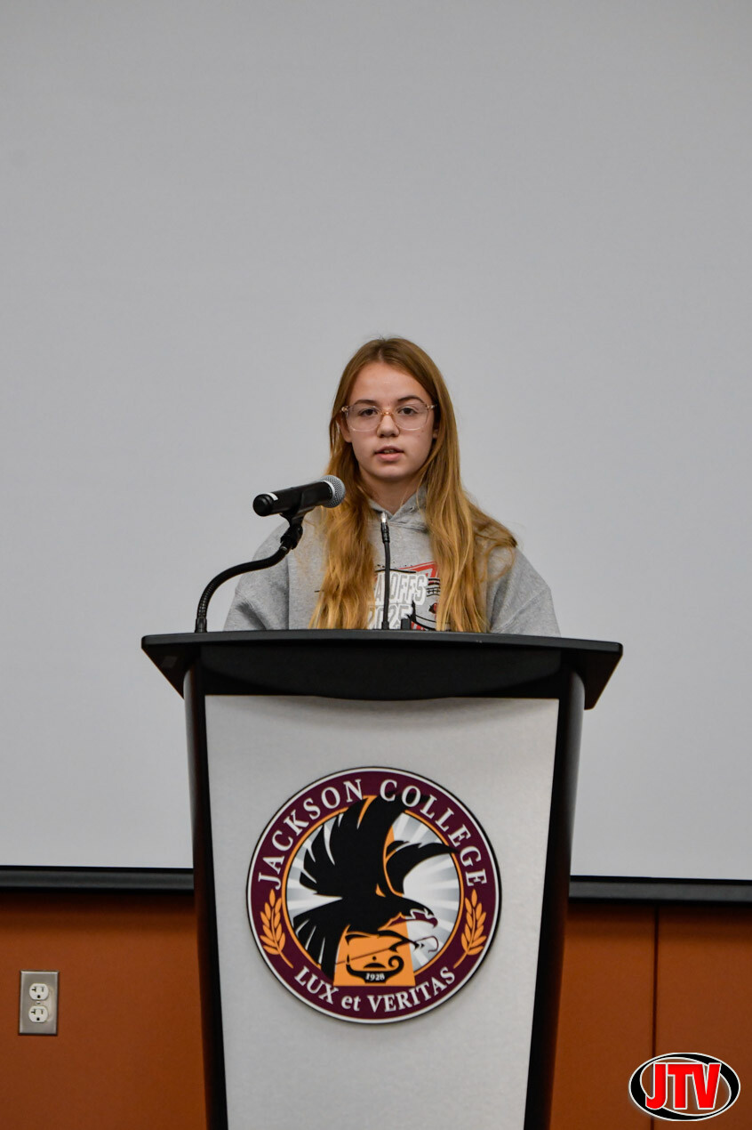 Poetry Out Loud 12-4-2025. Jackson College invites area high school students to participate in a dynamic poetry recitation competition. The winner of JC’s local competition will advance to the state Poetry Out Loud competition in Lansing in March 2026 (precise dates TBD). The state champion will receive $200 and will advance to the national finals next spring in Washington, D.C., where $50,000 in awards and school/organizational stipends will be distributed. Photos by Sara Scaife, JTV.