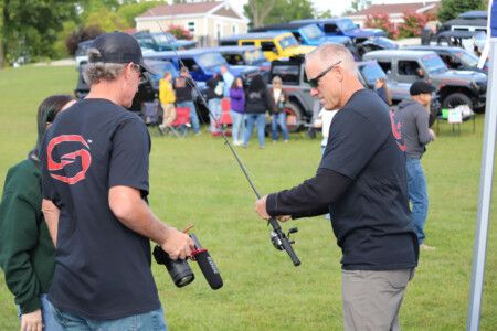 Jackson Professional Bass Fisherman Robby Lefere held a fishing demo and contest for children and families at the Bailey Excavating Company summer party in Sandstone Township, 9-7-2024. Photos by Bart Hawley, JTV.